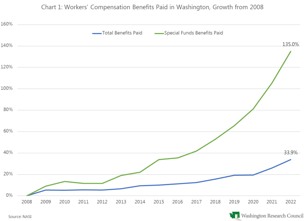 According to the National Academy of Social Insurance (NASI), Washington’s workers’ compensation benefit costs per covered worker are still the highest in the country. The most recent report was released in November 2024, and it covers data from 2022.